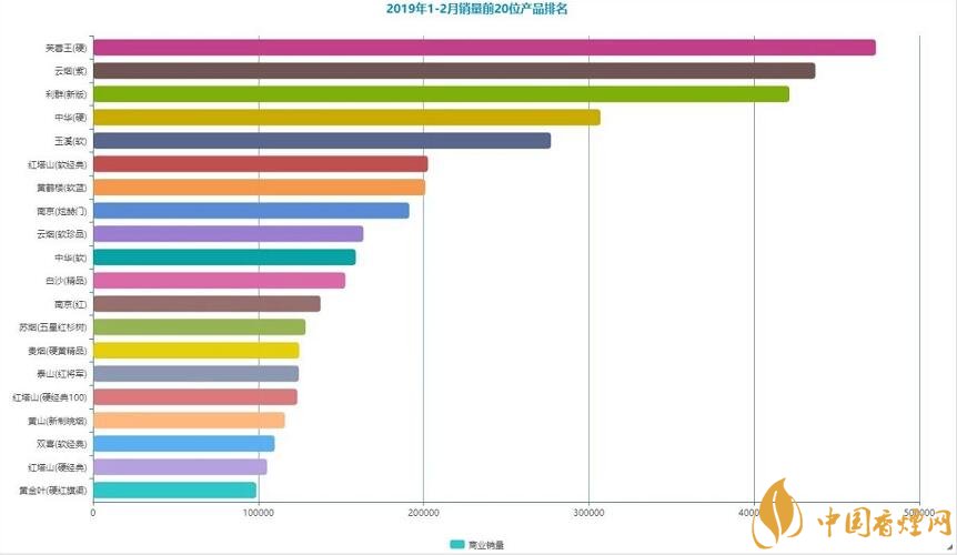 2019年1-2月銷量前20位產(chǎn)品排名,單位:萬箱
