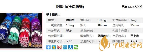 天韻阿里山1905多少錢 阿里山天韻香煙價(jià)格大全(4款)