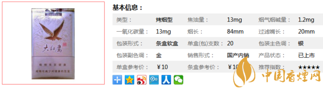 大紅鷹軟新品對產(chǎn)品的內(nèi)在質(zhì)量設(shè)計,總結(jié)多年來的產(chǎn)品開發(fā)經(jīng)驗,集成了整合后的技術(shù)研發(fā)優(yōu)勢對煙葉原料進行精心的篩選,反復配比,精心組合,優(yōu)選了津巴布韋、加拿大等國際高品質(zhì)的煙葉以及云南、河南、貴州等國內(nèi)優(yōu)質(zhì)的煙葉進行搭配,提升了產(chǎn)品定位。下面我們一起來看大紅鷹軟新品的參數(shù)信息:焦油量:13mg 煙堿量:1.2mg 一氧化碳量:13mg。
