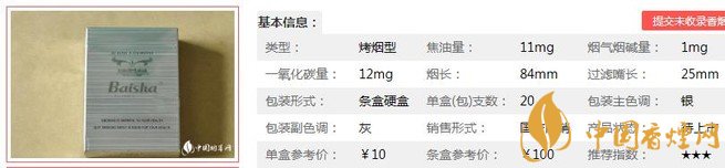 三、白沙銀世界香煙參數(shù)