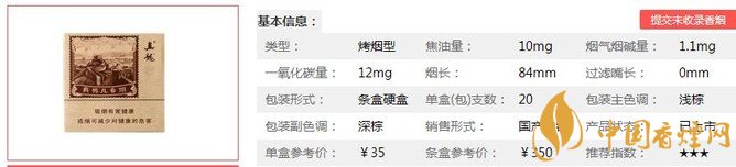 | 類(lèi)型 :烤煙型 | 焦油量 :10mg | 煙氣煙堿量 :1.1mg | 一氧化碳量 :12mg |