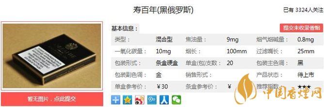 三、壽百年黑俄羅斯香煙參數(shù)