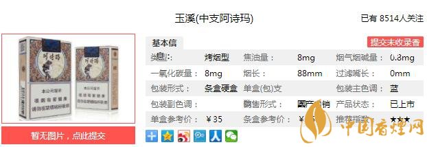 玉溪中支阿詩瑪多少錢一包 玉溪中支阿詩瑪口感介紹