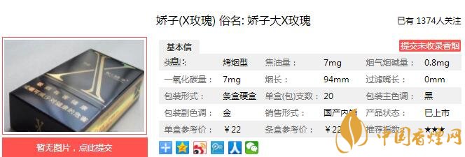 以上便是由香煙網(wǎng)小編為大家介紹的關(guān)于嬌子X玫瑰多少錢一包 嬌子X玫瑰口感及參數(shù)介紹的相關(guān)信息,想要了解更多有關(guān)內(nèi)容請(qǐng)點(diǎn)擊:嬌子寬窄五糧濃香中支多少一包 中支煙領(lǐng)域煙酒融合第一支