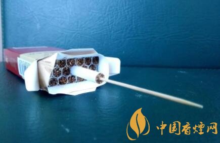 因為不太好抽取煙支,故而使用一根牙簽,插入。