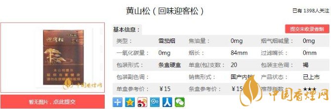 以上便是香煙網(wǎng)小編為大家介紹的關(guān)于黃山松香煙多少錢 黃山松回味迎客松價(jià)格及圖片分析的相關(guān)信息,大家看完之后是不是對(duì)于黃山松(回味迎客松)的相關(guān)信息更加了解呢,想要了解更多內(nèi)容歡迎點(diǎn)擊:黃山松回味迎客松 機(jī)制雪茄式卷煙口感測(cè)評(píng)