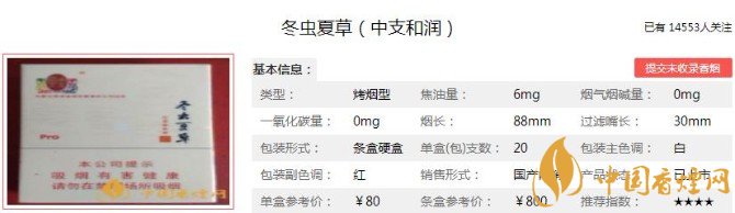 煙嘴圖案和包裝圖案高度統(tǒng)和諧統(tǒng)一,煙支香料味蠻重,稍有一點(diǎn)點(diǎn)藥材的味道,但是這款香煙的過濾嘴確實(shí)算比較長(zhǎng)的。同時(shí)煙支采用高效降焦卷煙紙、高效截留功能濾棒等多種減害降焦材料與技術(shù),全面降低香煙的焦油。下面便是冬蟲夏草(中支和潤(rùn))的基本參數(shù):焦油量:6mg 煙堿量:暫無 一氧化碳量:暫無.