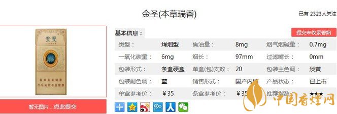 瑞香細(xì)支的煙支修長,和主流細(xì)支煙一樣,煙嘴口徑5mm。瑞香細(xì)支主原料以世界“黃金煙田”津巴布韋煙葉和云南煙葉為主,輔以江西生態(tài)種植區(qū)金圣基地?zé)熑~,并在煙葉中融入經(jīng)密練的天然名貴植物。經(jīng)香煙網(wǎng)小編市場(chǎng)調(diào)查金圣本草瑞香售價(jià)為35元/包。
