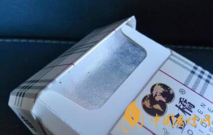 煙盒的高度是97mm。正反兩面的圖案設(shè)計相同,都是有如床單或者臺布樣式的畫面。九宮格樣式的中間,印制有金橋品牌香煙的LOGO,以及英倫奶香的名稱。從警示語句內(nèi)容來看,是大字版本初期款,2016年10月改版前的款式。