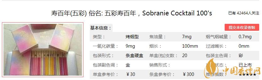 壽百年(五彩香煙價格參數(shù):