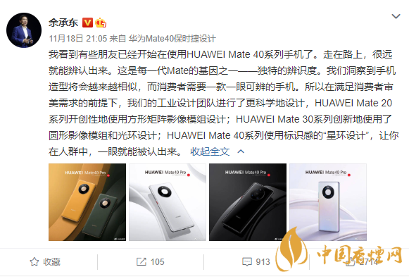 昨日晚間華為消費者業(yè)務(wù)CEO、華為常務(wù)董事余承東在社交媒體上表示,“獨特的辨識度”是每一代Mate的基因之一。我們洞察到手機(jī)造型將會越來越相似,而消費者需要一款一眼可辨的手機(jī),所以在滿足消費者審美需求的前提下,我們的工業(yè)設(shè)計團(tuán)隊進(jìn)行了更科學(xué)地設(shè)計。
