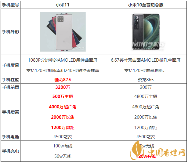 對(duì)于即將到來(lái)的小米11,大家都十分期待,對(duì)于小米11和小米10至尊紀(jì)念版哪款手機(jī)更值得入手?今天香煙網(wǎng)小編為大家?guī)?lái)最新的小米11和小米10至尊紀(jì)念版的參數(shù)對(duì)比,為大家?guī)?lái)最為詳細(xì)的參數(shù)評(píng)測(cè),對(duì)此感興趣的小伙伴,快來(lái)看看吧。