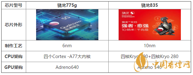 驍龍775g一款全新的處理器,高通驍龍775G處理器預(yù)計是一款定位中端的手機處理器,那么這款處理器和驍龍835相比較又是誰有著更加好的性能呢?下面就有香煙網(wǎng)小編來為大家介紹一下驍龍775g和驍龍835性能參數(shù)對比吧。