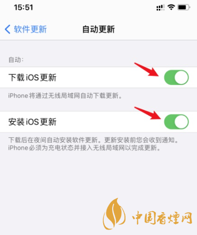 4、將【下載ios更新】和【安裝ios更新】后面的開關(guān)關(guān)閉即可。