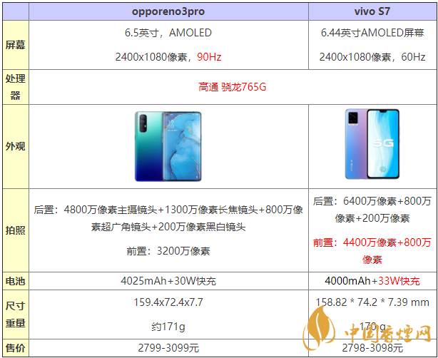 opporeno3pro和vivos7兩款手機(jī)都是中端定位的手機(jī),并且是有著相同的處理器,那么這兩款手機(jī)到底是有著什么區(qū)別,又是哪一款手機(jī)有著更加高的性能呢?opporeno3pro和vivos7哪款手機(jī)更值得入手?下面香煙網(wǎng)小編將對(duì)opporeno3pro和vivos7參數(shù)對(duì)比進(jìn)行介紹。
