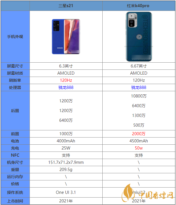 近期,即將迎來三星s21新機(jī)的發(fā)布,三星s21和紅米k40Pro有哪些區(qū)別?哪款手機(jī)更好?許多朋友對這兩款手機(jī)都十分關(guān)注,下面香煙網(wǎng)小編給大家?guī)砣莝21和紅米k40Pro的詳細(xì)參數(shù)對比,感興趣的朋友一起來看看吧!