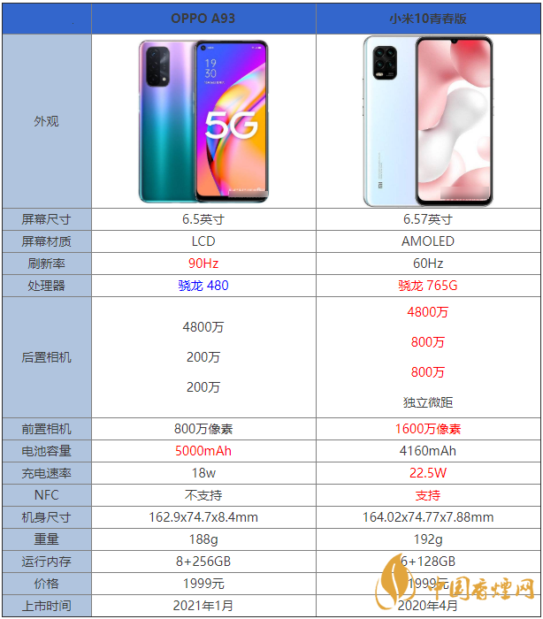 OPPOA93和小米10青春版都是價(jià)位相同的兩款手機(jī),不少小伙伴都不知道該如何選擇,那么OPPOA93和小米10有什么區(qū)別?哪款手機(jī)更值得入手?下面香煙網(wǎng)小編將對(duì)OPPOA93和小米10青春版參數(shù)對(duì)比進(jìn)行介紹,感興趣的朋友一起來(lái)看看吧!