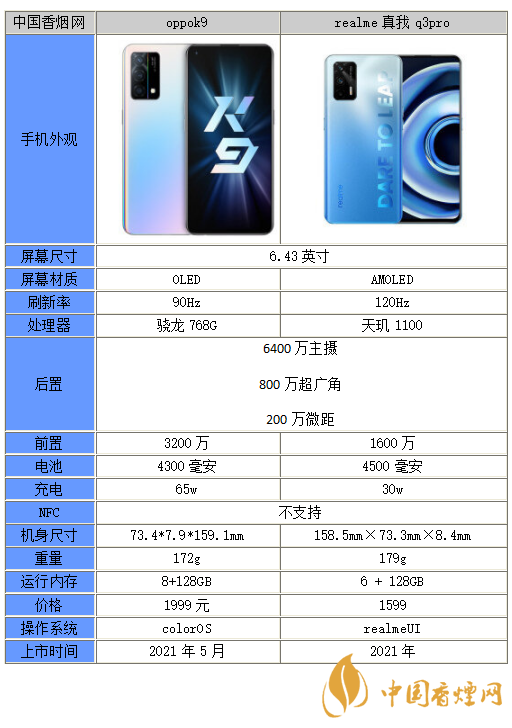 OPPOK9和真我Q3Pro哪個好-OPPOK9和真我Q3Pro參數(shù)對比