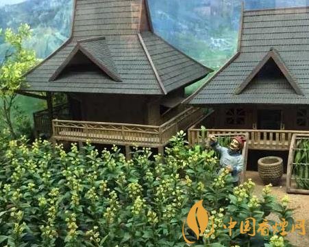 在中國煙草博物館農(nóng)業(yè)館中,有一個以云南吊腳樓為背景設(shè)計的雕塑場景,展示了香料煙在當(dāng)?shù)胤N植(如圖)、采摘、曬制、分級加工的過程。