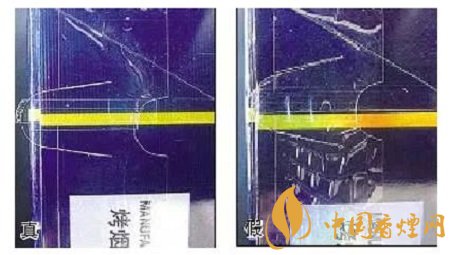 真煙壓邊準確,印刷清晰;假煙燙金粗糙。