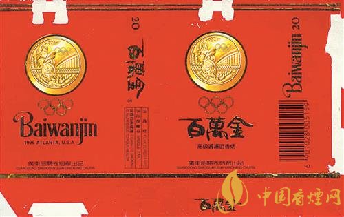 1996年,第26屆夏季奧運(yùn)會(huì)在美國(guó)亞特蘭大舉行。上世紀(jì)90年代,廣東韶關(guān)卷煙廠出品了“百萬金”煙標(biāo)(圖②)。該煙標(biāo)以紅色為底色,主、副版上均印有金燦燦的奧運(yùn)金牌以及奧運(yùn)五環(huán)圖案,副版上還印有“1996 ATLANTA USA”字樣。