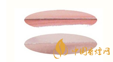 ③盒外包裝側面的內(nèi)包裝紙封口處圖案:上面圖案的內(nèi)包裝紙封口處由于為點陣膠貼,導致該處的包裝紙比較松弛,用手輕按煙盒上下兩端,就能發(fā)現(xiàn)該處的包裝紙明顯地張開;下面圖案的內(nèi)包裝紙封口處由于是片陣膠貼,導致該處的包裝紙相對較緊,用手輕按煙盒上下兩端,發(fā)現(xiàn)該處包裝紙仍然為一體,沒有絲毫的張開,而且該處的包裝封口也與側面不平行,出現(xiàn)包裝紙向里偏斜的特征。
