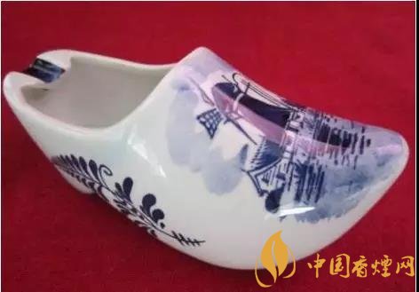 這款工藝煙灰缸是來(lái)自荷蘭的這款煙灰缸,呈尖頭木屐形,底色為白色,除少量文字與邊紋外,圖案皆以藍(lán)色繪之。這款高檔煙灰缸圖片鞋身左右前后都繪有對(duì)稱的三葉草圖案;鞋面繪有荷蘭風(fēng)車、村舍及水田灌木圖案;此外,鞋頭還用淡色繪以藍(lán)天白云,籠罩上空。而鞋口靠近鞋跟方向的邊沿處,設(shè)計(jì)了三個(gè)凹槽,方便多人吸煙時(shí)使用??偠灾?,是一款顏值與實(shí)用并存的煙灰缸無(wú)疑了。